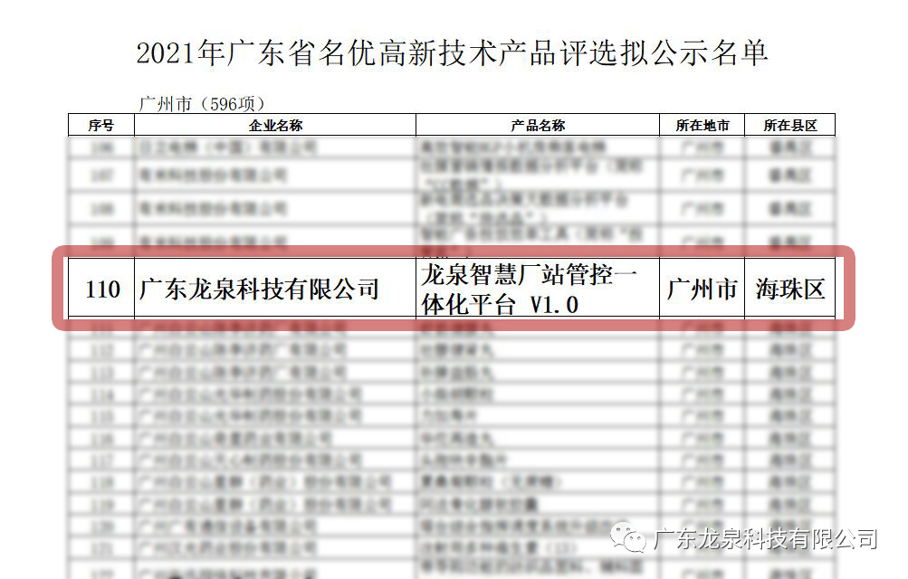 喜訊!熱烈祝賀我司“龍泉智慧廠站管控一體化平臺V1.0“被認(rèn)定為廣東省名優(yōu)高新技術(shù)產(chǎn)品